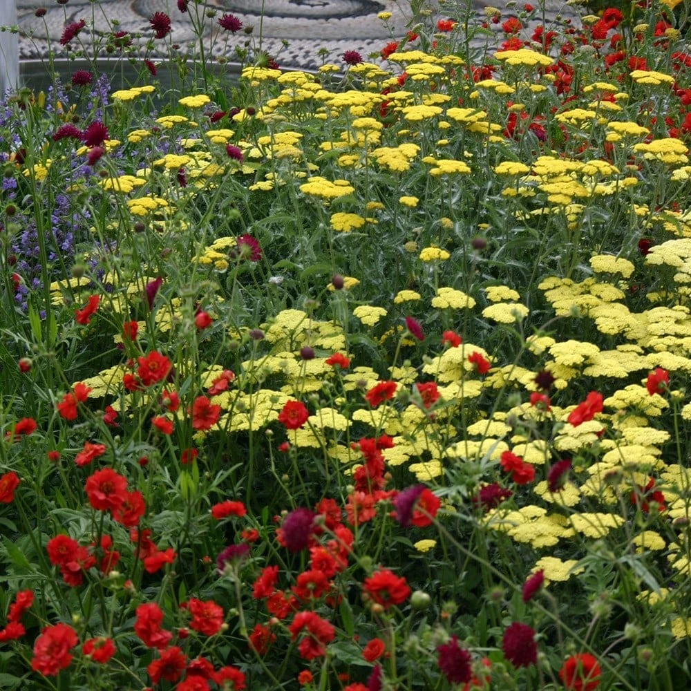 A popular variety, with a long flowering season and semi-double, vivid scarlet flowers that appear from June to August among rosettes of puckered, scalloped fresh green leaves. This easy-to-grow geum looks best among other ‘hot’ coloured flowers towards the front of a sunny border.