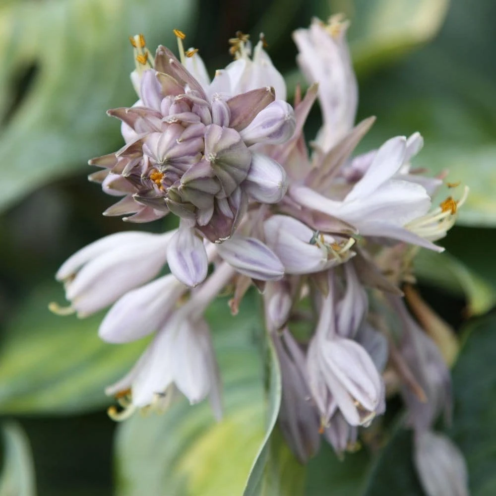 This is a real showstopper. Its heart-shaped leaves are splashed with lime green and initially have a blue-grey wash, which gradually fades as the leaves mature throughout the summer. In July it produces spikes of lavender-grey trumpet-shaped flowers. It’s a variegated sport of Hosta ‘Halcyon’ and makes a flourish at the front of a shady border, sheltered from cold, drying winds, or on its own in a container. The foliage is also invaluable for softening the edges of hard landscaping. Once established, its layers of leaves will suppress weeds, too.