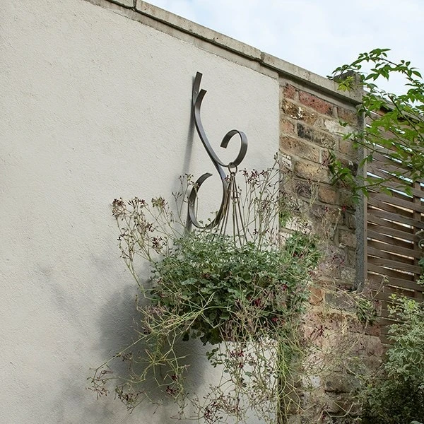 Inspired by classic wrought iron scroll garden benches, these striking hooks make a smart and practical choice for hanging pots and baskets, bird feeders, bee logs, wind spinners and more. Made from 5mm by 25mm steel bar with two fixing points and a matt powder coat finish. Suitable for indoor or outdoor use.